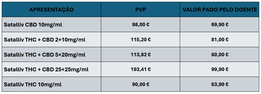 Está em vigor um programa de apoio especial para Satalliv (Canábis Medicinal), que permitirá a todos os doentes aceder a um preço especial aquando a sua dispensa da receita médica, numa farmácia associada da ANF.